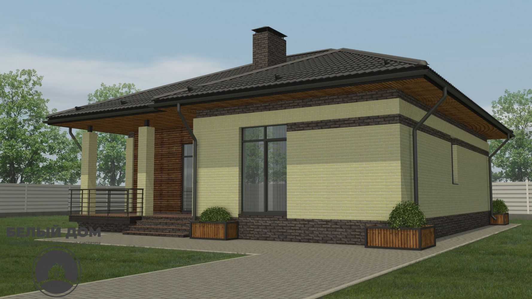 Над окнами применена система подвесов кирпича BAUT Кровля - металлочерепица Kvinta, производитель - Grand Line, покрытие Velur RAL 7024