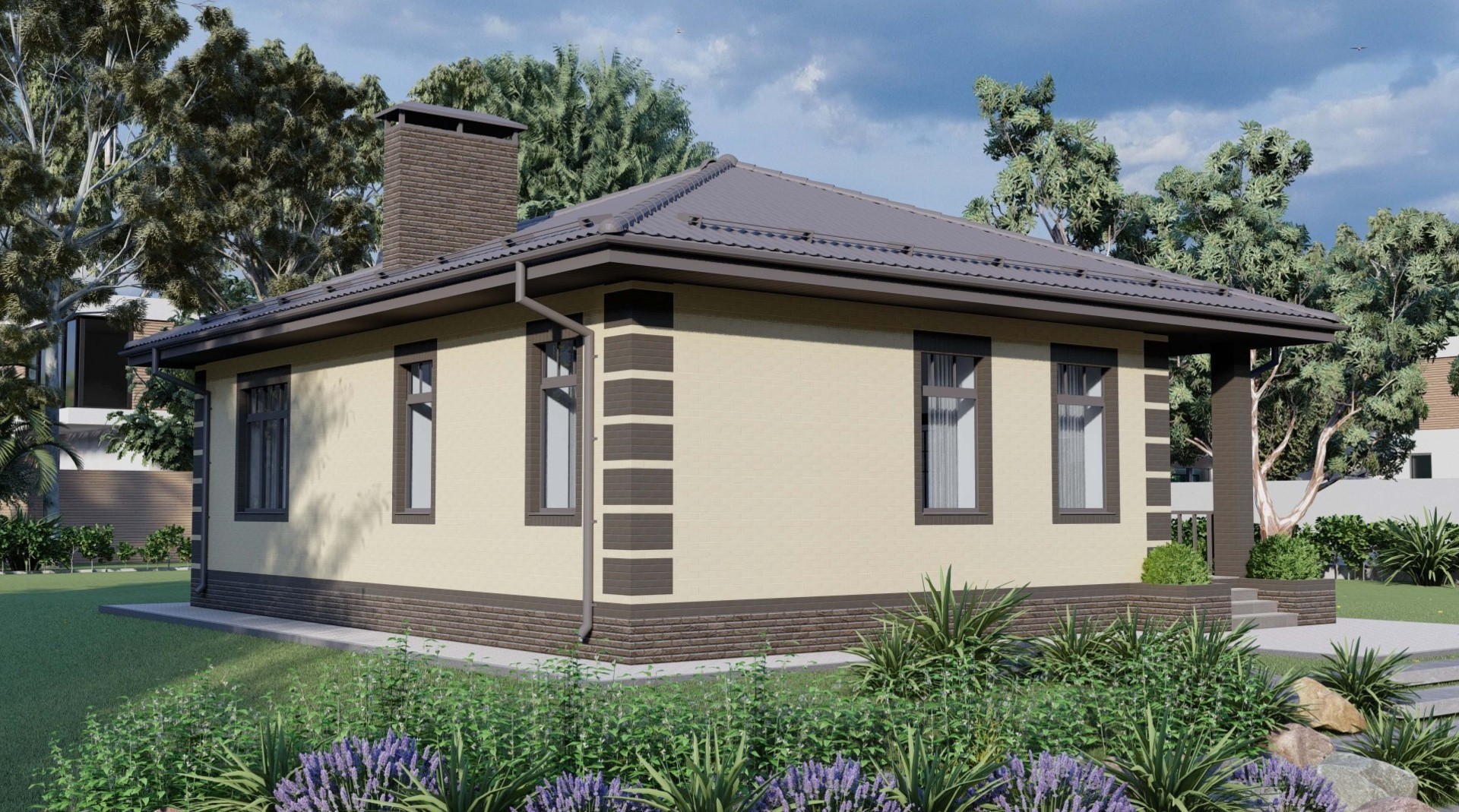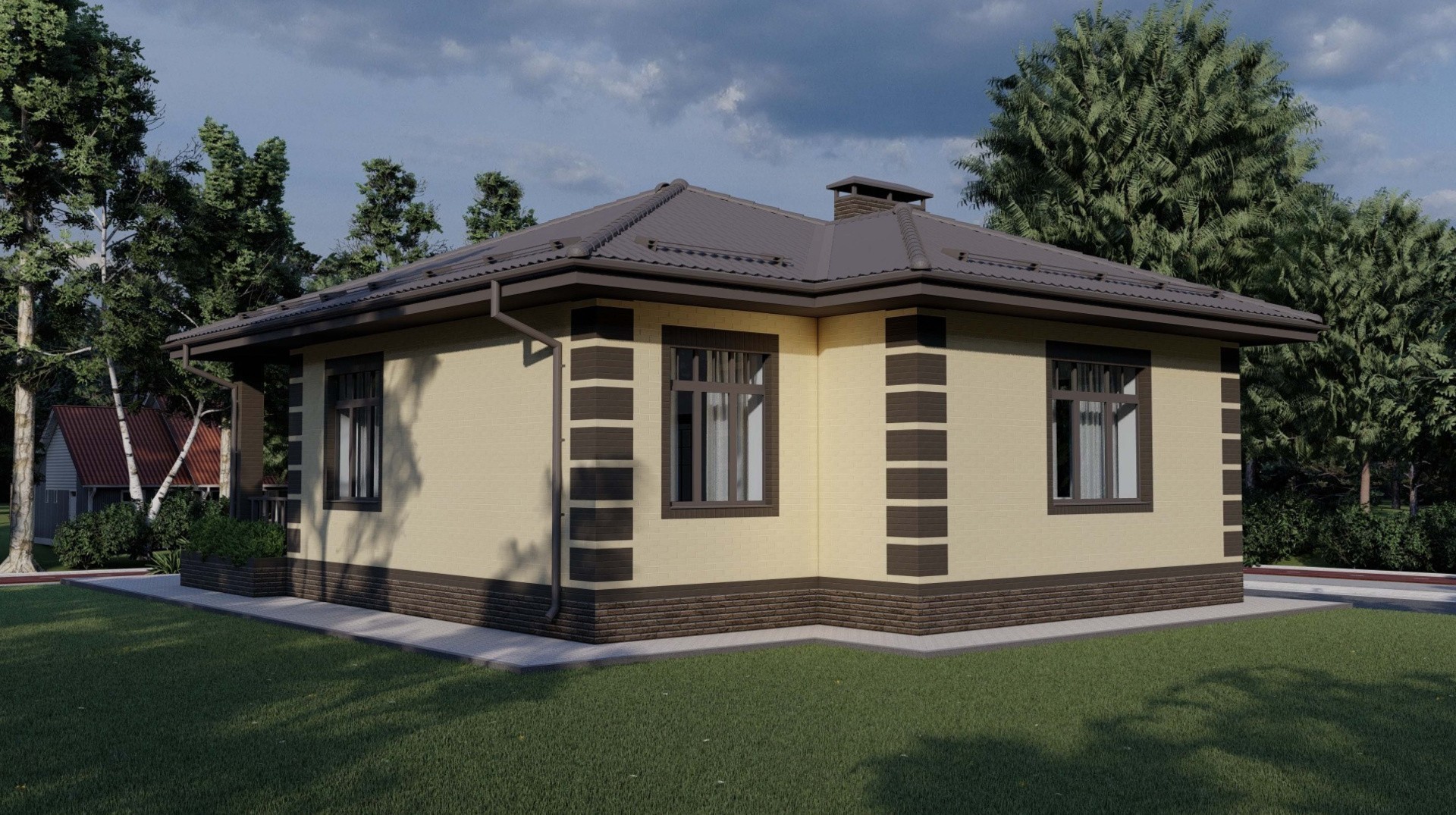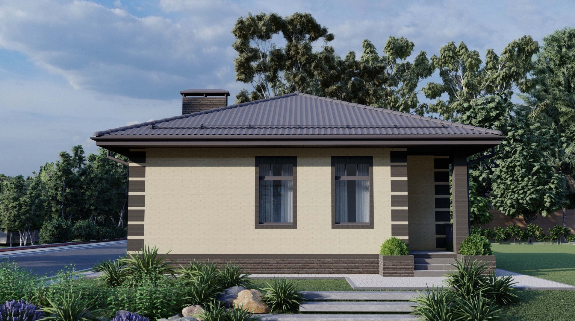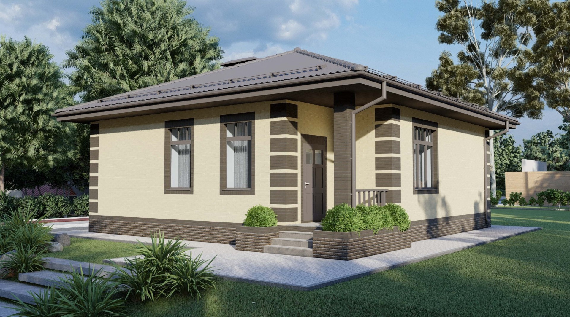 Наружные стены - 38 керамический блок с отделкой облицовочным кирпичом "Слоновая кость" на бежевой кладочной смеси Perel